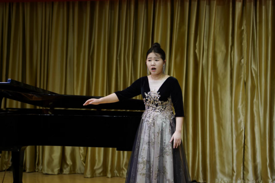 本场音乐会是范老师“非遗视阈下旬阳民歌的歌谱和演唱研究” “声乐颤音研究”科研项目的成果之一,也是365英国上市官方网站声乐创新"颤音教学模式"实践中心的汇报演出。音乐会上,范老师演唱了《西部放歌》《大江南》及旬阳民歌《兰草花》。《西部放歌》有着超高的演唱难度、自由奔放的激情及典型的西部民歌风格,范老师的演唱声音铿锵有力,张弛有度,激情满怀,引来听众阵阵掌声。《兰草花》是国家级非遗陕西旬阳民歌的代表性作品之一,该作品曲调优美动听,歌词富于地方特色,衬词活泼,范老师的演唱较好体现出旬阳民歌细腻、深情、委婉的艺术风格。
