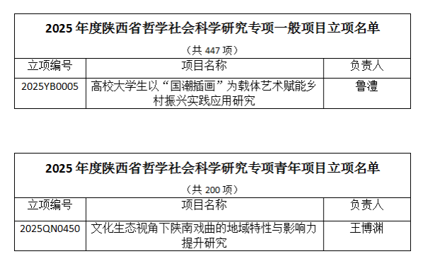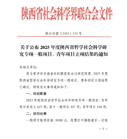 12月23日,根据陕西省社会科学界联合会公布的2025年度陕西省哲学社会科学研究专项一般项目、青年项目立项通知,公司两位老师获批立项。