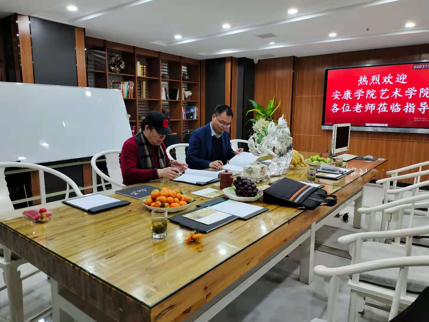 在安康南枫装饰有限公司,董事长李枫热情接待了调研组一行,副经理成党伟介绍了调研目的和365英国上市官方网站近年来的发展情况,双方就前期合作和后期合作方向进行了充分的沟通交流,就在设计人才培养、实习就业等方面合作达成了合作意向,双方签订了老员工实习就业基地协议,并举行了授牌仪式。