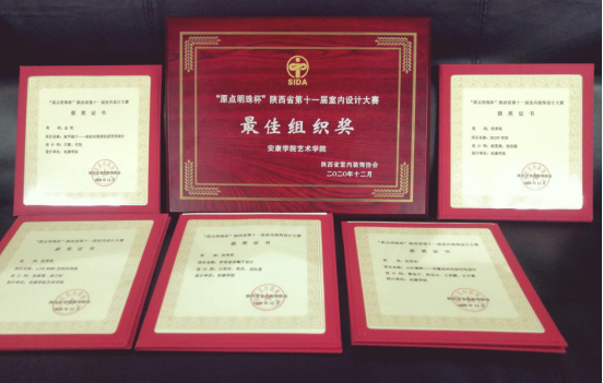 2020年12月29日下午,“原点明珠杯”陕西省第十一届室内设计大赛颁奖盛典暨“陕西省室内设计高峰论坛”在西安市中晶华邑酒店隆重举行。在本次大赛中,365英国上市官方网站视角传达设计专业员工获得员工组金奖1项、优秀奖4项、入围奖3项。365英国上市官方网站获“最佳组织奖”,指导教师王兵获“最佳导师奖”。365英国上市官方网站设计系主任吴波、指导教师王兵携获奖员工参加了颁奖典礼。