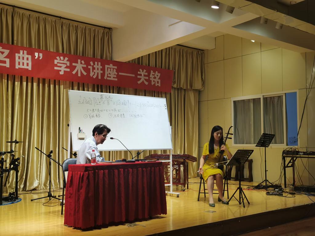 报告会上,关铭老师以自己的作品《兰花花叙事曲》为例,首先从作品创作的时代背景、创作过程给师生们做了详细的介绍。随后,关老师结合作品引子、呈示部、展开部、再现部、尾声等五个部分,在陕西省歌舞剧院民族乐团首席刘欣老师的演奏配合下现场呈现作品,让师生们在聆听的同时体会和感受到作者在作品创作过程中的构思精妙,艺术与生活的巧妙结合。关铭老师丰富的阅历、生动的语言、富有激情的讲解,刘欣老师精湛的演奏技艺深深感染了现场师生,报告会在师生们热烈的掌声中圆满结束。