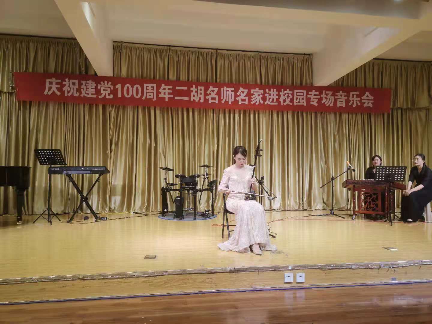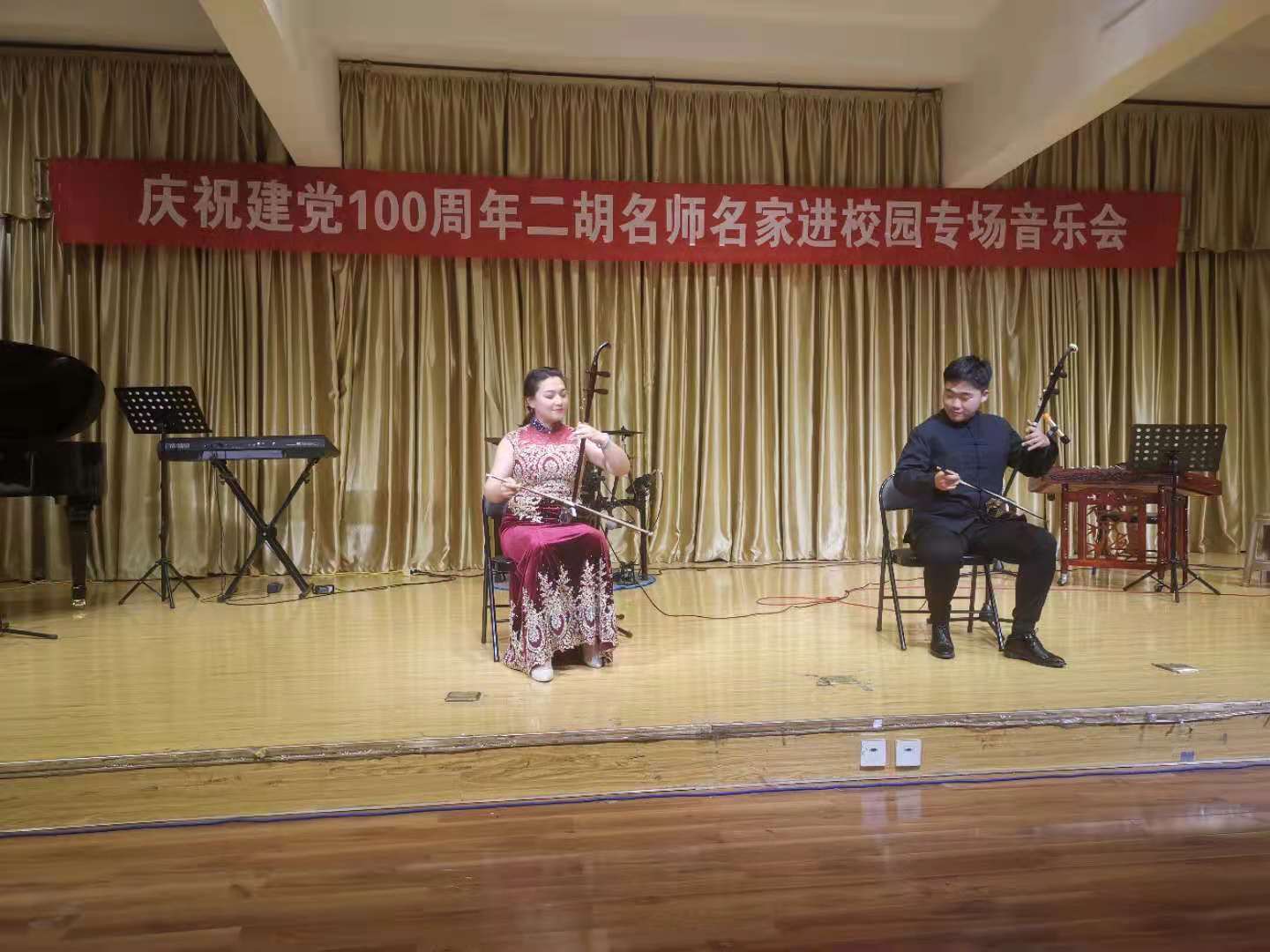 6月10日晚,由陕西民族管弦乐学会二胡专业委员会和公司365英国上市官方网站联合主办的“庆祝中国共产党成立100周年暨秦派二胡名师名家进校园365英国上市公司专场音乐会”在公司江北校区1401演艺厅成功举办,公司师生200余人聆听了音乐会。