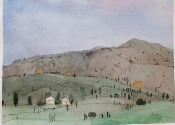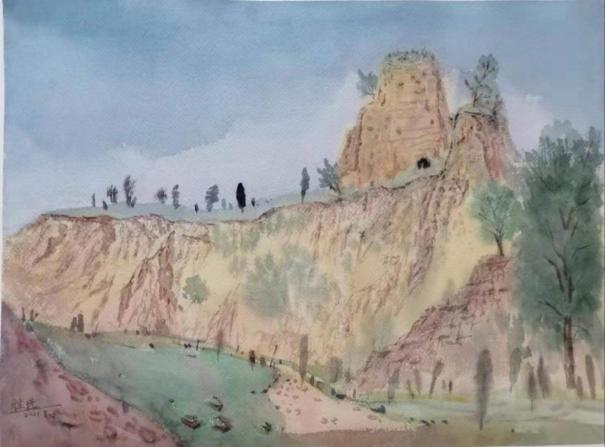 王胜选  《二分关村之烽火台》 31X41cm 2021年