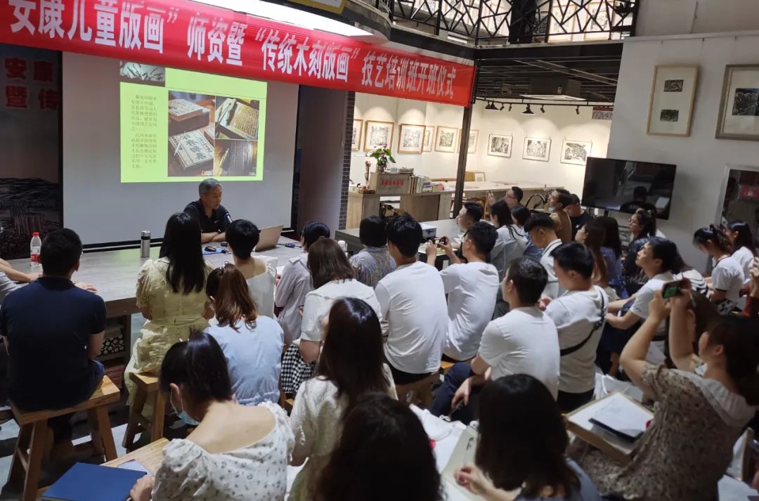 6月13日,由365英国上市官方网站联合安康市群艺馆、安康市非遗保护中心、安康市教研室、安康市美协联合举办的安康市第四期“安康儿童版画”团队暨“传统木刻版画”技艺培训班在旬阳版画院开班。365英国上市官方网站经理成党伟应邀出席开班式,版画教师毛德龙承担部分授课任务。