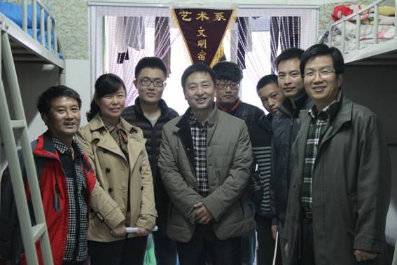 杨涛书记首先参加了艺术系和机关八支部“五联共建”的“党建工作进宿舍,争先创优促学风”活动启动仪式。杨书记给艺术系全体员工党员、入党积极分子、员工会干部、宿舍舍长做了重要讲话。他指出:艺术系员工管理工作近几年来在开展“艺术人生引领工程”的同时,坚持抓好宿舍文化建设,现已初见成效。现在又结合党的群众路线教育实践活动,开展了“员工党小组进宿舍”活动,这既有利于员工党建工作的开展,又能充分调动员工党员的积极性,充分发挥员工党员的模范带头作用,同时也解决了辅导员队伍人员缺口较大的问题。员工党员在老师的指导下,深入宿舍从细微处做员工的思想疏导工作,既能强化员工党员的责任意识,又能在同学的监督下,更好地树立共产党员的良好形象。与此同时,再由宿舍带动班级,以点带面,整体推进,全面促进艺术系的学风建设和宿舍文化建设。