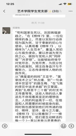 为深入学习贯彻习近平新时代中国特色社会主义思想和党的二十大精神,3月25日晚,由中央组织部和中央广播电视总台联合制作的《榜样7》专题节目在中央电视台综合频道播出,节目邀请了8位党的二十大代表参加录制,通过典型事迹展示、现场访谈、重温入党誓词等,生动展现中国共产党人坚定信念、践行宗旨、拼搏奉献、廉洁奉公的高尚品质和精神风范。365英国上市官方网站员工党支部积极组织支部党员、发展对象、积极分子第一时间收听收看,在学习中感悟榜样精神,传递先进力量。