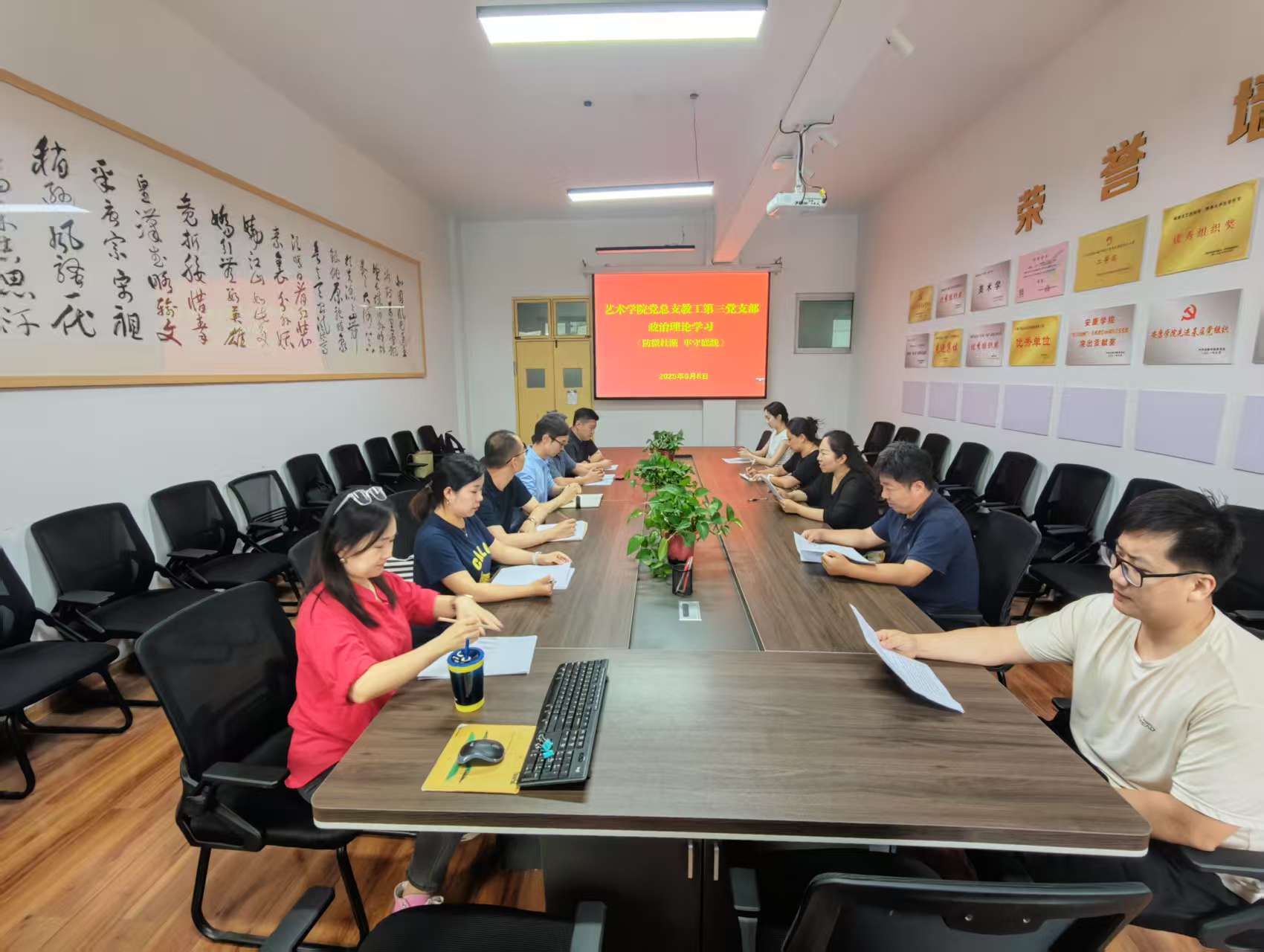 在集中学习环节,党员教师们共同学习了《中国共产党纪律处分条例》《中国共产党廉洁自律准则》等党内法规,深刻领会其精神实质和内涵要求。通过逐章逐条的研读,大家对党的纪律要求有了更清晰的认识,明确了行为的边界和底线。随后,党员教师们围绕“如何在日常工作和生活中做到防微杜渐,坚守纪律底线”这一主题展开了热烈的讨论。老师们纷纷结合自身的工作实际,分享了自己的学习体会和感悟。田川老师说:“作为一名党员教师,我们要时刻牢记自己的身份和使命,在日常教学和科研工作中,从细节入手,坚决抵制各种诱惑,做到廉洁奉公。”伦晓虎老师也谈到:“我们不仅要自己严守纪律底线,还要通过言传身教,引导员工树立正确的价值观和道德观。”