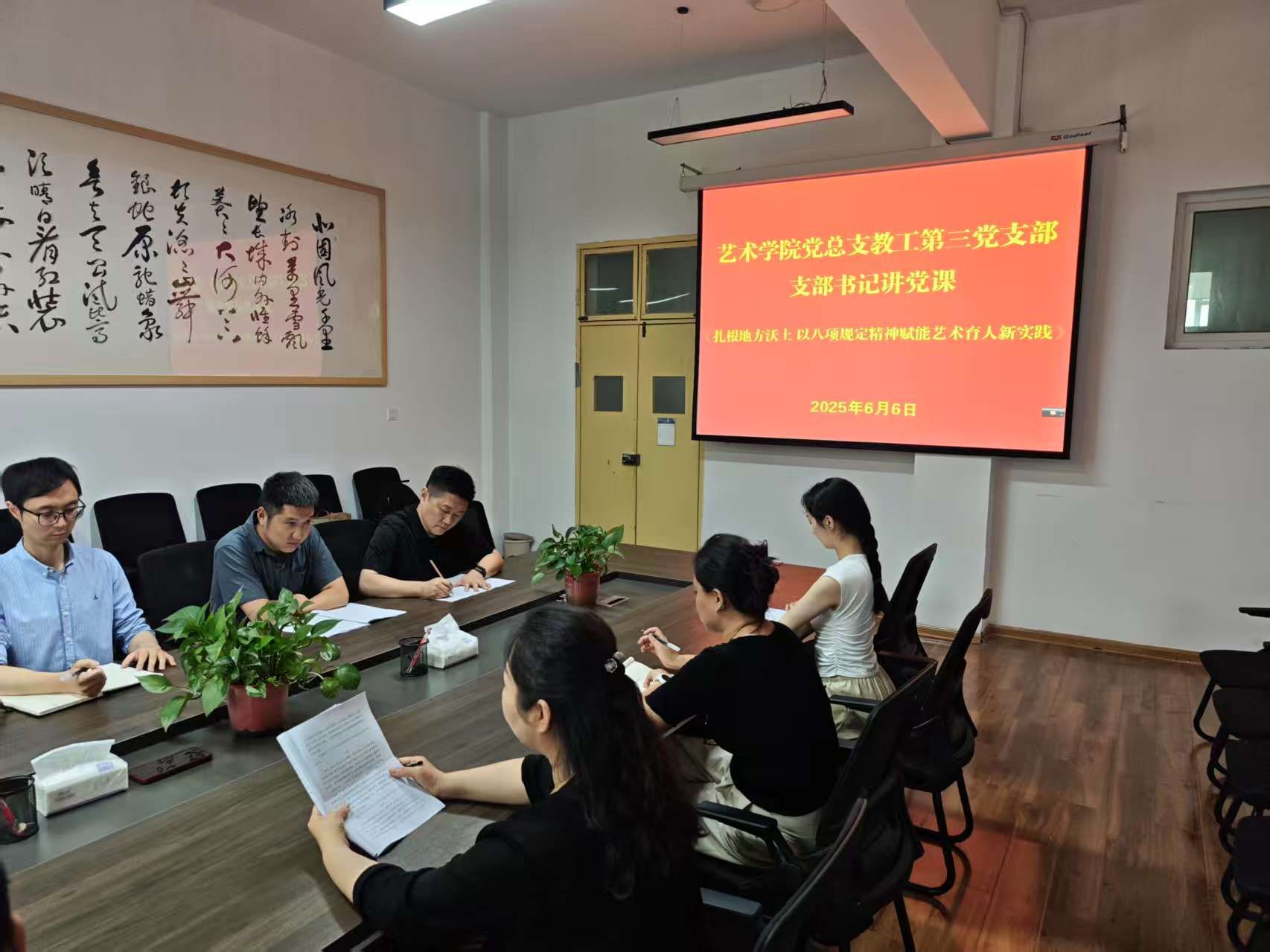 此次党课进一步为音乐系党员教师指明了方向,激发了大家的责任感和使命感。党员们纷纷表示,将以此次党课为契机,深刻领会中央八项规定精神,立足岗位,扎根地方文化,努力为员工创造更优质的艺术教育环境,为培养德艺双馨的艺术人才贡献力量。未来,教工第三党支部也将持续深入贯彻中央八项规定精神,探索更多创新举措,推动艺术育人工作不断取得新成效 ,为地方文化艺术的繁荣发展注入新活力。