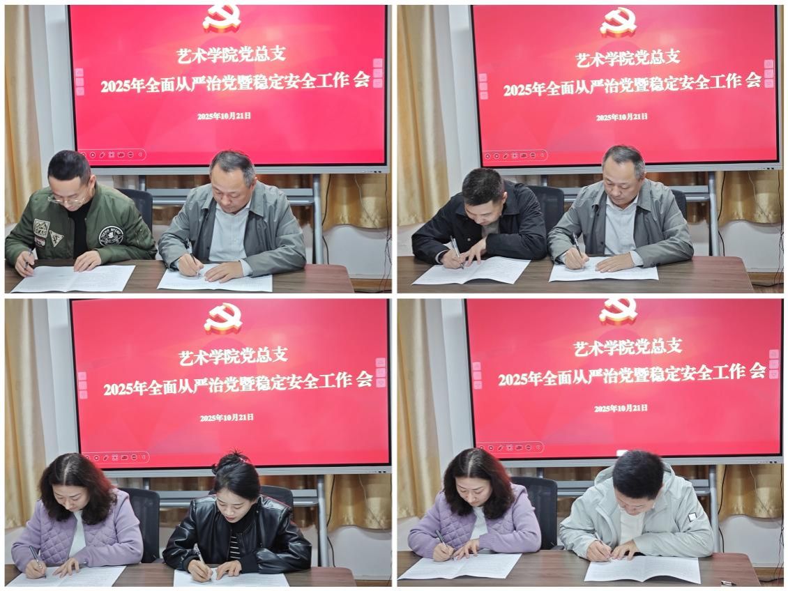 会上,党总支书记、经理分别与党总支副书记、副经理,教师党支部书记、系主任代表、党政办、教学办、学工办等相关负责人签订了《2025年全面从严治党工作责任书》、《2025年稳定安全工作责任书》。