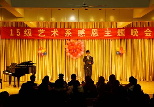 感恩教育作为老员工思想政治教育的新路径,为促进员工全面发展,实现德育目标,建设和谐校园,构建和谐社会提供有力保障。根据校团委关于在2015级新生中开展感恩教育活动的工作安排,艺术系团总支在校团委、系党总支的领导下,认真贯彻,积极开展以“感恩存心,有爱为伴”为主题的感恩系列活动。20151125日晚,我系2015级音乐学专业在江北校区1401教室举行感恩主题晚会。参加晚会的有系党总支书记冯丰收、系学工办主任刘泽桢、2014级辅导员艾蕾、2015级辅导员鲁澧以及2015级全体同学。