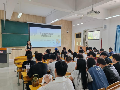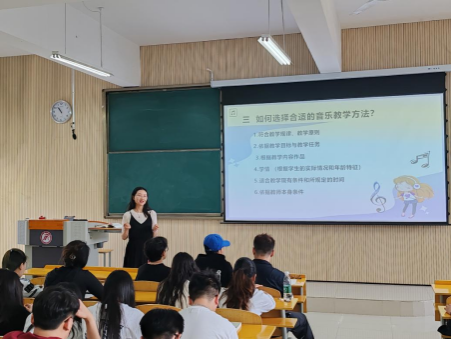 林老师以《音乐教学模式与教学方法设计》为题,首先,对音乐教学模式进行了系统的分类。她指出,音乐教学模式按照教育目标分类理论大致可以分为情感模式、行为模式和认知模式。接下来,林老师对中小学音乐学科常用的教学方法进行了详细讲解,她还结合自身的教学经验和案例,让员工们深刻理解了各种教学方法在实际教学中的应用和效果。