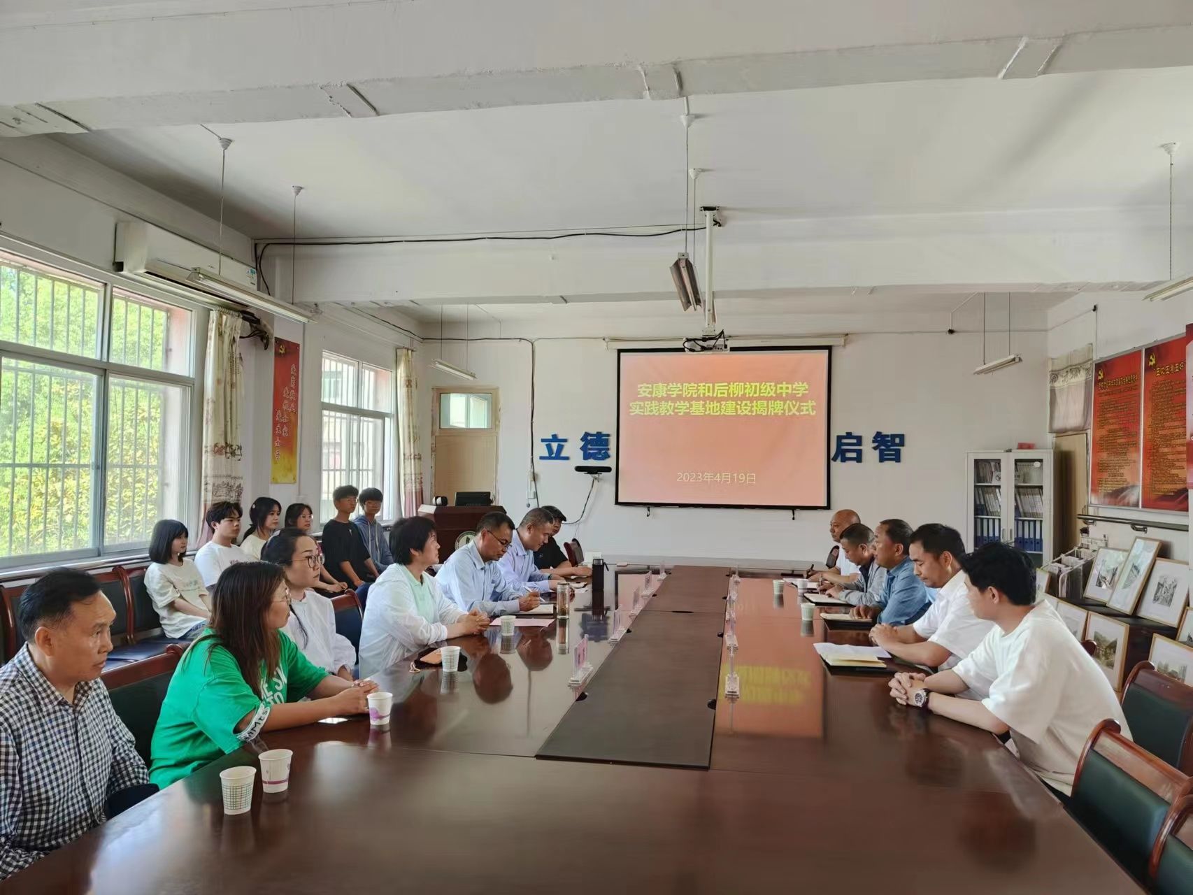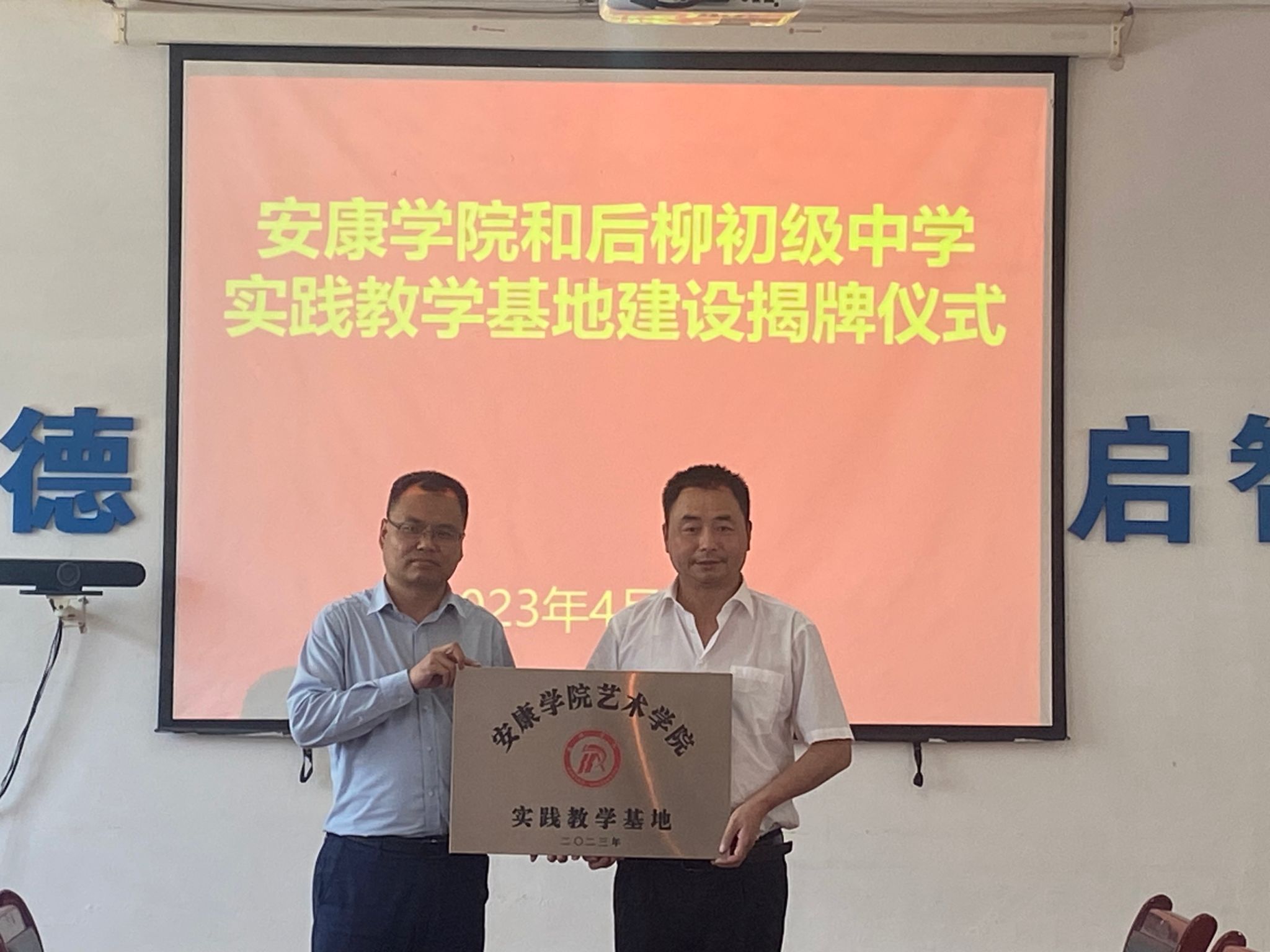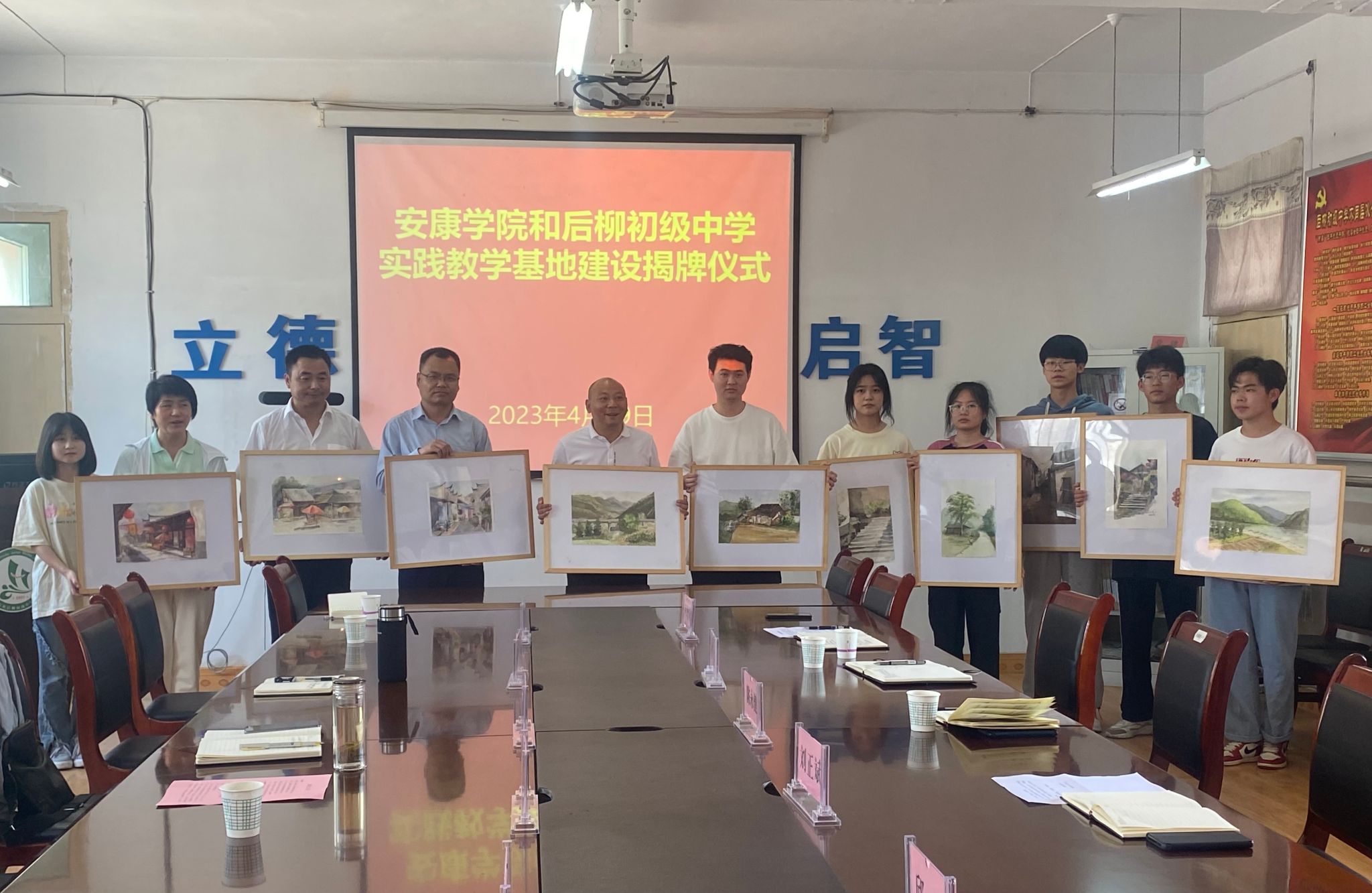 为进一步对标人才培养定位加强在基层公司的实践教学基地建设,推进美术学省级一流专业建设。4月19日下午,365英国上市官方网站在石泉县后柳初级中学开展基层公司美育调研并举行了共建实践教学基地签约授牌仪式。365英国上市官方网站经理成党伟、副经理孙海洋、美术系主任杜敏,石泉县教体科技局党委委员、师训教研中心主任陈永健,教育股股长熊军,后柳中学副董事长刘正斌、尹增敬出席挂牌仪式,365英国上市官方网站美术学专业师生代表10余人参加活动。