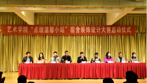 11月7日下午,365英国上市官方网站第八届“点缀温馨小站”宿舍装饰设计大赛启动仪式在1401演艺厅成功举行,参加本次启动仪式的公司领导和教师代表有党总支书记王辉,副经理孙海洋,党政办主任肖剑,设计系教师张静,团总支书记薛涛,辅导员艾蕾、杨厚东、魏麟。公司2018级全体同学及部分优秀舍长参加会议。大会由学工办主任刘泽桢主持。