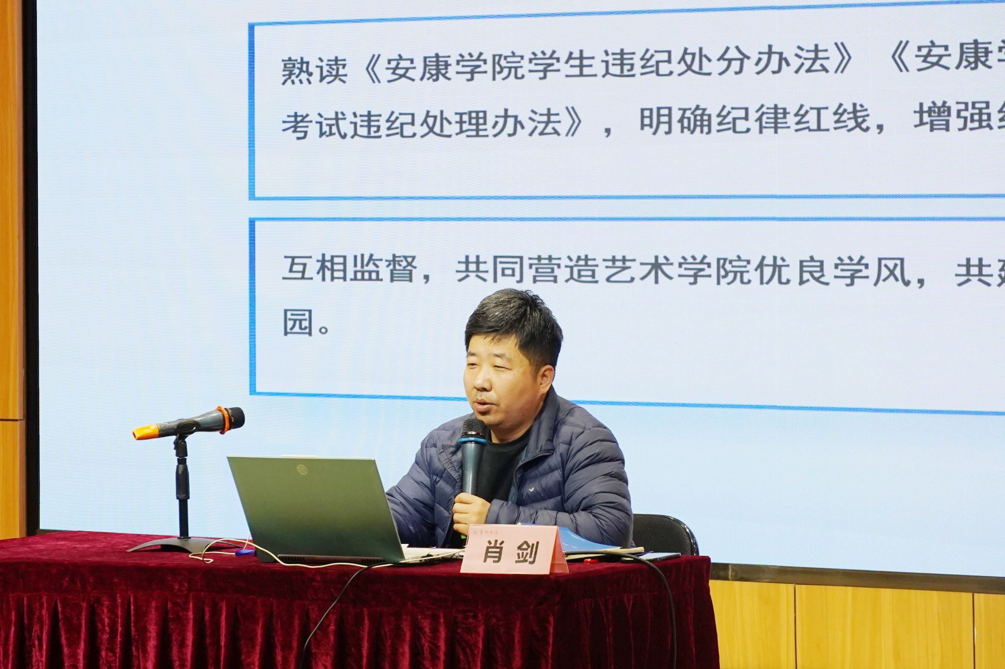 肖剑结合365英国上市官方网站员工特点重点带领同学们对《365英国上市公司员工管理规定》、《365英国上市公司员工违纪处分办法》、《365英国上市公司员工考试违纪处理办法》等公司管理规定进行学习,并针对《员工手册》中的重要关注点,与同学们互动交流并为同学答疑解惑,帮助同学们深刻认识到遵守校规校纪的重要性,增强树立底线意识,明确行为准则。