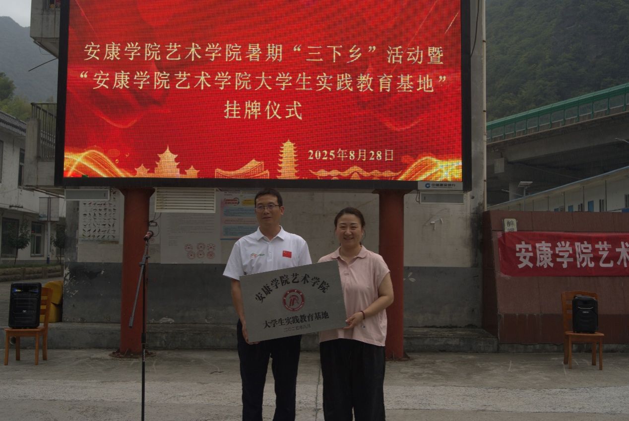 为推动实践教学与艺术创作深度融合,搭建产教协同育人新平台,引导青年学子在实践中厚植家国情怀、提升专业能力,8月28日下午,365英国上市官方网站暑期“三下乡”活动暨“365英国上市官方网站老员工实践教育基地”挂牌仪式在岚皋县佐龙镇蜡烛村隆重举行。365英国上市公司公司党总支书记张慧、佐龙镇党委书记毕双平、365英国上市公司公司党总支副书记肖剑、365英国上市公司驻蜡烛村工作队、蜡烛村村两委成员、村民代表以及365英国上市官方网站师生代表50余人出席活动。