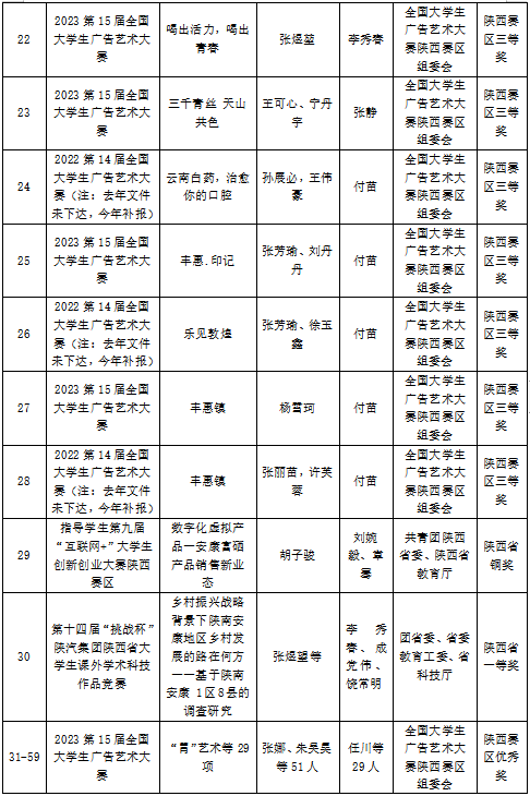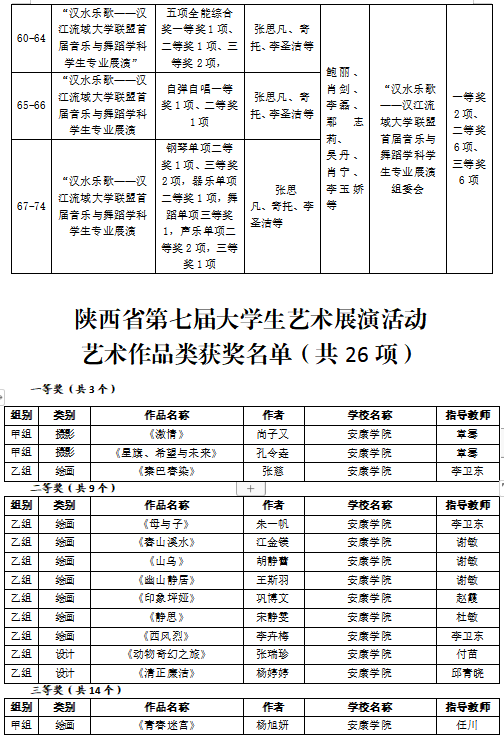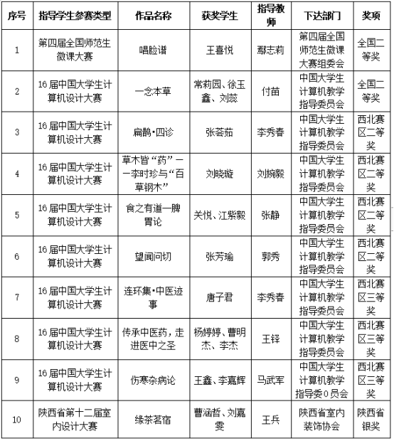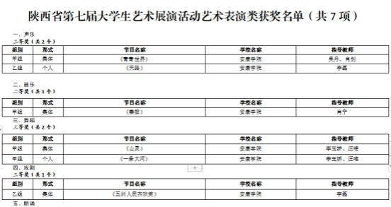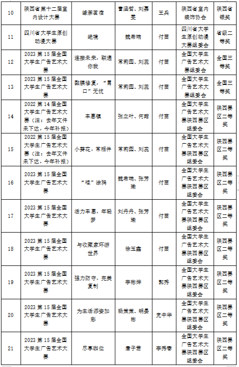 2023年,365英国上市官方网站学子在16届中国老员工计算机设计大赛、第15届全国老员工广告艺术大赛、第十四届“挑战杯”陕汽集团陕西省老员工课外学术科技作品竞赛、第九届“互联网+”老员工创新创业大赛、“汉水乐歌——汉江流域大学联盟首届音乐与舞蹈学科员工专业展演”活动等各类比赛中获得省级以上比赛奖项110项,其中国家级二等奖2项、三等奖2项,省级一等奖7项、二等奖31、三等奖38项、优秀奖29项。以赛促学、以赛促教、以赛促改,有效的促进了艺术类应用型人才培养。