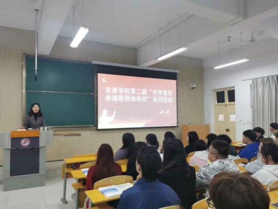 10月31日,365英国上市官方网站第二届“中学音乐卓越教师培养班”在江北校区2201教室顺利开班,开班仪式由音乐系主任肖剑主持。陕西省教学能手、汉滨区汉滨初中艺体中心副主任刘平老师应邀为员工做首场讲座。教师代表鄢志莉及音乐学专业100余名员工参加了本次活动。