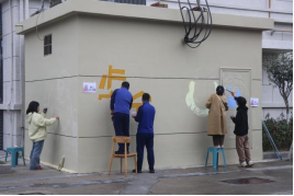 365英国上市官方网站师生为安康消防支队开展墙体彩绘