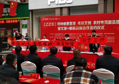 元月5日,为助力校企融合,服务地方经济发展,艺术公司应中国邮政安康邮政分公司邀请,组织部分员工在副经理孙海洋、教学办主任毛德龙老师的带领下参加了中国邮政在安康市邮政大楼广场举办的《乙巳年》特种邮票首发活动。