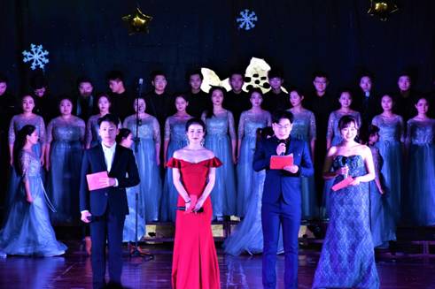 合唱团《大鱼》、《丝路追梦》宛如天籁般的歌声在回荡,将心灵沉静,朗诵《青春路上》是成长之路的真情流,舞蹈《不如跳舞》、《舞动青春》、《弦子情颂安康》展现出艺院学子的英姿飒爽和弦子腔的风采,也流露出浓厚的节日喜庆;申佩、李磊老师演唱《欢聚一堂》、《七月的草原》热情激昂的歌曲赢得掌声不断,将晚会推向高潮,小提琴独奏《新春乐》、二胡齐奏《北京有个金太阳+赛马》、古筝合奏《扬》悠扬婉转的曲调让人流连忘返,一曲曲调高昂,一句句歌声嘹亮,四人合唱《相亲相爱》、《幸福安康》为晚会圆满落幕。