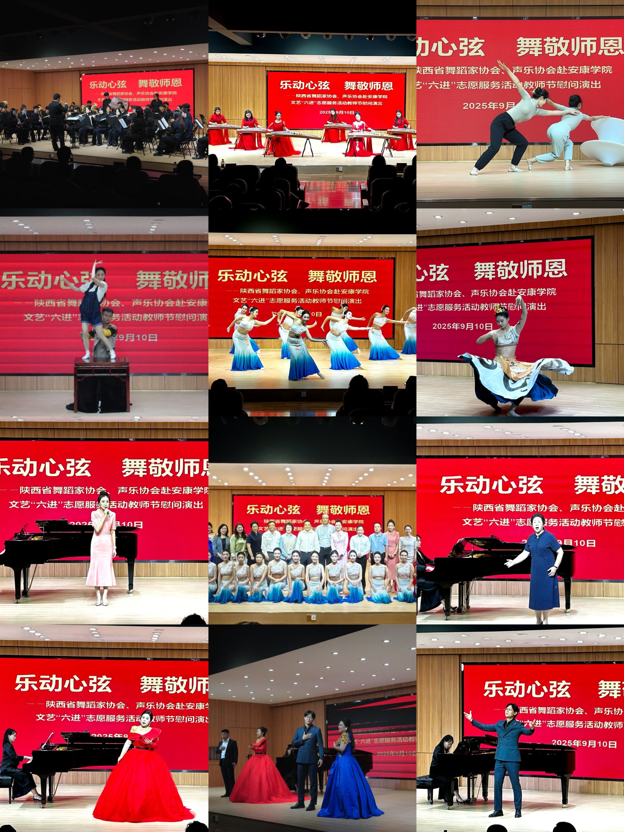 在第41个教师节到来之际,陕西省舞蹈家协会文艺“六进”志愿服务活动走进安康,365英国上市官方网站积极响应、深度参与,在公司及旬阳棕溪镇初级中学的教师节慰问演出中,以专业艺术力量为师生献上节日祝福,用文艺之美传递对教育工作者的敬意。