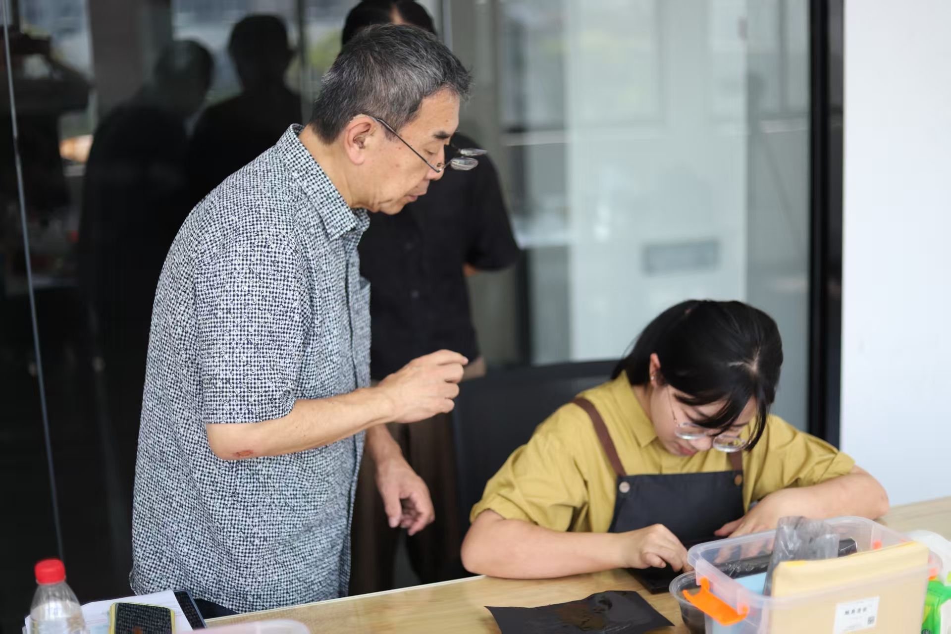 本次研修班由闽江公司美术公司与致道漆器合作主办,特邀国际著名漆艺家、东京艺术大学漆艺教授、日本工艺会常任理事小椋范彦教授。课堂围绕全套专业材料展开教学,从螺钿莳绘工具的正确握法、莳绘用笔的蘸漆力度控制,到色漆的调配比例、银粉的洒布技巧,小椋教授都逐一拆解演示。在为期八天的理论讲授、示范教学与亲手实践,系统深入地掌握了这两项技法的核心工艺、材料特性与艺术表现语言。