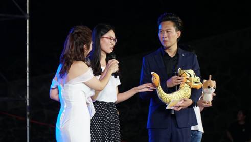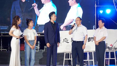 在美术、设计教学成果展示的《墨舞龙文》节目中,设计系毛绒玩具制作、环境艺术设计作品以及2019届美术专业毕业生为母校创作的书画作品,赢得了现场观众热烈的掌声。党委副书记杨行玉、副董事长钟生海代表公司接收了书画作品,杨行玉老师现场以诗抒怀,表达了对19届毕业生的殷切希望、钟生海老师深情寄语,抒发了师生间浓烈的感情,校领导的真情实感将晚会推向了高潮。