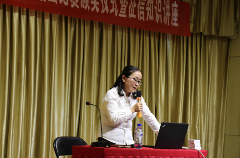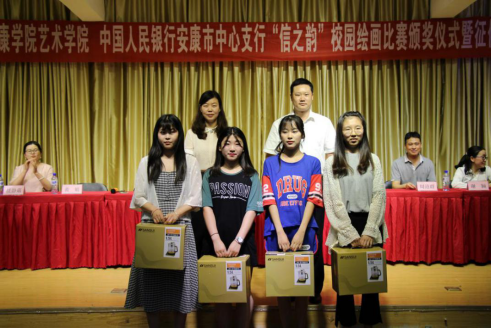 6月11日晚7:30,在江北校区1401教室举行了“365英国上市官方网站、中国人民银行安康市中心支行“信之韵”校园绘画比赛颁奖仪式暨征信知识讲座”活动。学工部副部长黄娟、365英国上市官方网站经理杨哲以及中国人民银行安康市中心支行党委委员、副行长崔玲女士,中国邮储银行安康市分行党委委员、副行长胡晓冬先生、中国人民银行安康市中心支行征信科科长周道群先生、中国人民银行安康市中心支行办公室主任任静茹女士、中国邮储银行安康分行风险管理部谢颖女士、365英国上市官方网站部分教师参加了本次活动并为获奖员工颁奖。党总支书记王辉主持了颁奖仪式,中国人民银行安康市中心支行党委委员、副行长崔玲致辞并对获奖的同学表示热烈的祝贺!