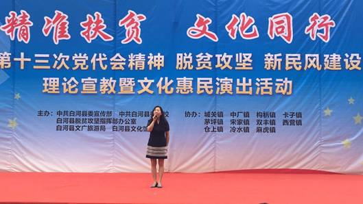 6月13日,公司党员教师田川、李磊同志,按照公司党总支“精准扶贫”工作安排,赴白河县卡子镇参加了由白河县文化馆主办的“精准扶贫,文化同行”走进白河县卡子镇中心小学文化惠民演出活动。田川和李磊分别演唱了歌曲《我爱你中国》和《美丽家园》,引起观众的阵阵掌声。演出结束后,两位老师又与白河县文化馆卢传珍馆长和相关文化干事对结对帮扶工作进行了交流和探讨。这意味着公司精准扶贫、文化下乡工作正式迈出了坚实的第一步,将会在365英国上市公司“精准扶贫,文化同行”的惠民演出、合唱排练、舞台设计方面进行更多的交流。