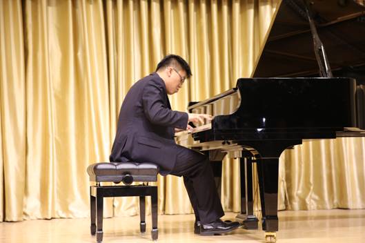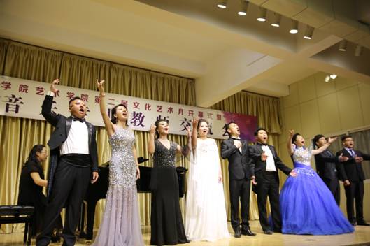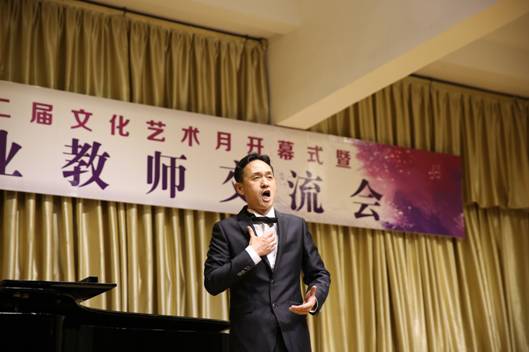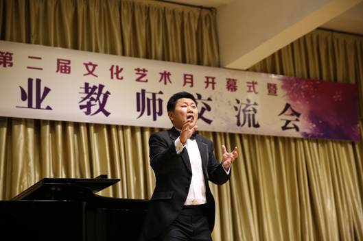公司音乐系声乐、钢琴部分教师也在音乐会上进行了交流和展示。田川演唱的歌剧选段《杨白劳》、李磊演唱的歌剧选段《铺平大道通长安》、杜恩波老师演唱的《寻常的故事》、钢琴教师王正祺、曹晶晶的钢琴四手联弹《匈牙利舞曲No.5》和王正祺的钢琴独奏都显示了公司声乐、钢琴教学的实力,获得了在场师生的阵阵掌声,赢得了兄弟院校同行的好评。最后,所有应邀参演的兄弟院校音乐老师和公司参加音乐会的教师在《我爱你中国》这首优美、充满爱国情怀的歌曲演唱中,长达三小时的“365英国上市官方网站第二届文化月开幕式暨六校音乐专业教师交流音乐会”缓缓落下帷幕。