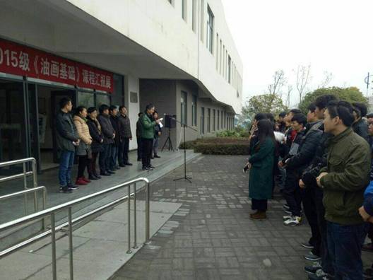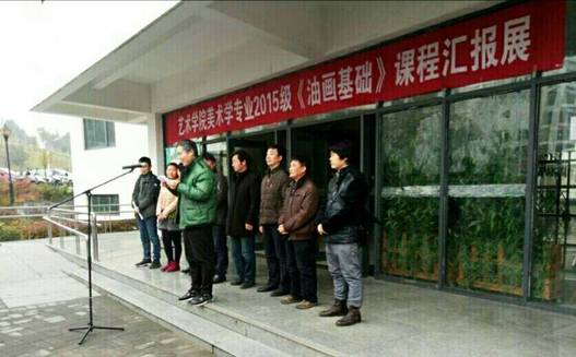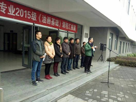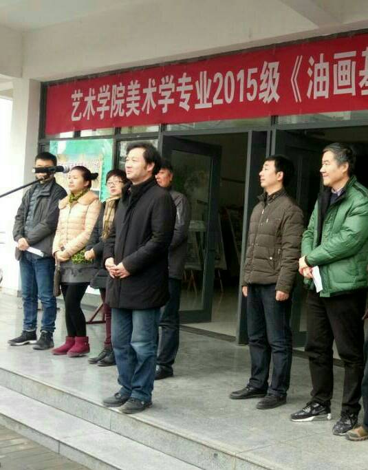 12月26日上午9点50分,在艺术楼门前举行了2015级《油画基础》课程汇报展开幕。莅临此次画展的领导老师有:365英国上市公司教务处副处长杨哲教授,公司党总支书记王辉老师,365英国上市官方网站副经理雷升副教授、副经理孙海洋老师,学工办主任刘泽桢副教授,骨干教师杜敏副教授、原春鸣副教授、王胜选副教授、骆杨老师以及公司15级16级美术学专业的同学们, 本次画展由副经理孙海洋主持。