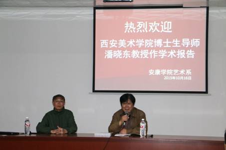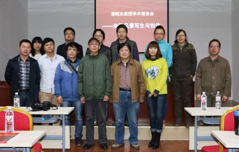 10月16日,西安美术公司博士生导师潘晓东教授,在我系校外实践教学基地——洛南县华阳写生基地学术报告厅,为我系视觉传达设计专业2014级员工做了“油画风景写生与创作”的专题报告,报告中潘晓东教授简述了油画的发展历史、重点分析了风景写生中对不同天气光线的把握、色彩风景写生的观察、写生的方法与步骤,最后结合自己的油画作品和大家共同分享了自己的创作经验,讲解写生与创作的关系。潘教授的报告深入浅出,精彩纷呈,同学们收益匪浅。这次学术报告也是我系首次将校外实践教学与学术交流活动相结合的一次尝试。对于进一步完善实践教学环节,提升教学效果有着良好的实际意义,为以后的写生采风实践教学提供了良好的借鉴。