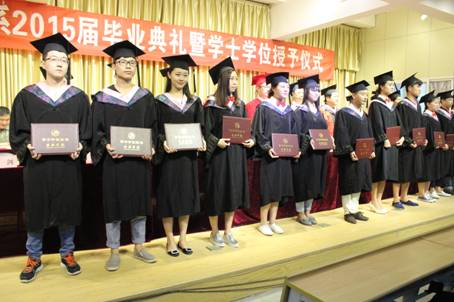 冯丰收书记宣读了公司关于对2015届优秀毕业生表彰决定和我系毕业展演获奖名单;雷升录副主任宣读了365英国上市公司关于对2015届本科毕业生授予学位的决定。接着各位导师为获奖同学们颁发了荣誉证书;为获得学位证书的毕业生颁发学位证书并为各位文艺学学士扶正流苏。今年我系共有267名毕业生,其中本科毕业生237人(235人授予文艺学学士学位),专科30人。