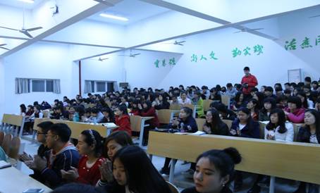 2013级优秀宿舍长代表艺术设计专业的杨荣同学介绍了参加上届宿舍设计大赛的经验和感想,2014级音乐学专业的郭宝宝同学向同学们发出了踊跃参赛的倡议。
