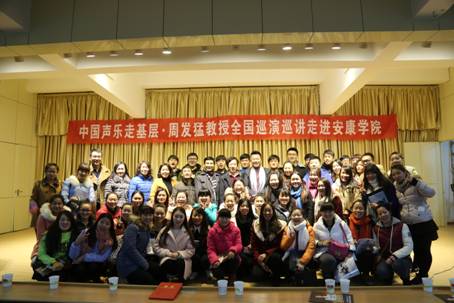 周发猛教授不仅在声乐教学上硕果累累,还积极投身于社会公益事业,并以个人名义全额资助了多名贫困生和残疾员工完成学业。在讲座的最后,周教授引导各位同学,在追求艺术的道路上不仅要学好专业技能,更要孝敬父母,为社会多做贡献,以优异的成绩感恩父母、感恩老师、回报社会,为继承和弘扬我国的声乐艺术事业而努力奋斗。在师生们的盛情邀请下,周发猛教授完整清唱了陕北民歌《泪蛋蛋抛在沙蒿蒿林》,活动在在热烈的掌声下圆满落下帷幕。