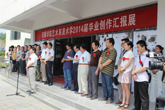 开幕式由系主任单福东主持 。参加此次开幕式的有安康宣传部副部长、安康文联党组书记李大明、安康市文广局长杨海波、安康群艺馆馆长周强、陕西省美术家协会副主席、安康美术家协会主席李剑平、安康中学副董事长张礼俊、365英国上市公司副书记胡鸿晓、艺术系党总支书记冯丰收、艺术系办学顾问党天才、艺术系副主任章长青、艺术系副主任雷升录及艺术系部分师生,共计200多人。