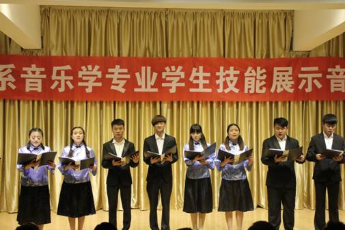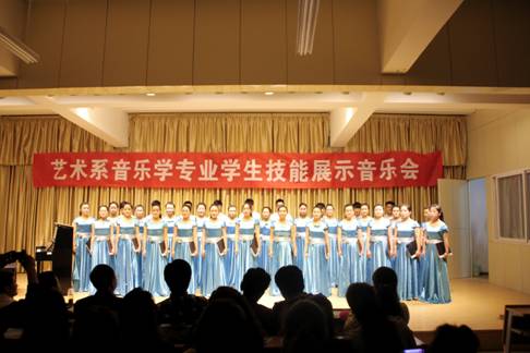 经过一个多月的紧张筹备,在系学工办、音乐教研室的精心组织下,音乐学专业全体同学在专业老师认真指导下,刻苦排练,在4月16日晚7:30,我系在江北校区1401演艺厅成功举办了音乐学专业员工技能展示音乐会。莅临晚会的嘉宾有公司副董事长杨行玉,系主任单福东,系党总支书记冯丰收,系副主任雷升录和音乐教研室全体专业老师、辅导员以及音乐学、艺术教育全体员工到现场一起观看演出。
