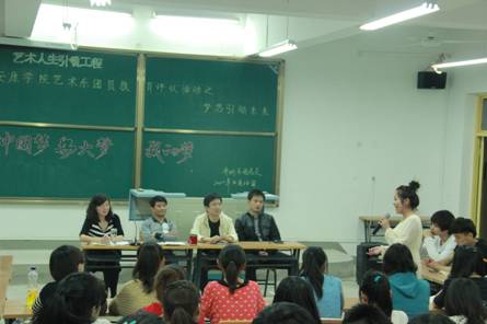接着,同学们就“我的梦”主题踊跃发言,结合自己的实际,从各个方面描述了自己的梦想、班集体的梦想,以及辨析了“梦想与幻想”的关系,得出了梦想是前进的目标,只有行动才能实现、中国梦是实现个人梦的广阔空间、个人梦是实现中国梦的基础的共识,同学们的精彩发言赢得了大家一阵阵热烈的掌声,现场气氛热烈。11级艺术设计专业蒋晟、音乐学专业周琦翔、美术学专业员工李宝成等十余名同学畅谈了以后努力学习,力争考上研究生,继续深造,实现个人梦想,为我系争光;11级、12级艺术设计的同学向大家展示了自己未来创业的梦想,做一个对社会有用的人,美术学员工谈到了要到祖国需要的地方去支教,“为中国梦做出自己的贡献”。音乐学专业的廖宁同学用自己优美的歌声表达了自己的情怀,将座谈会推向一个高潮。