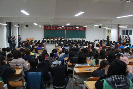 我系第二届“点缀温馨小站”宿舍装饰设计大赛启动仪式于3月24日晚7:30分在江北校区1301教室隆重举行。系党总支书记冯丰收、学工办主任刘泽桢、辅导员黄娟和王毅、教师代表郭秀和张静老师以及系员工分会员工干部和全体2012级新生共300余人参加了启动仪式。启动仪式由刘泽桢主持。