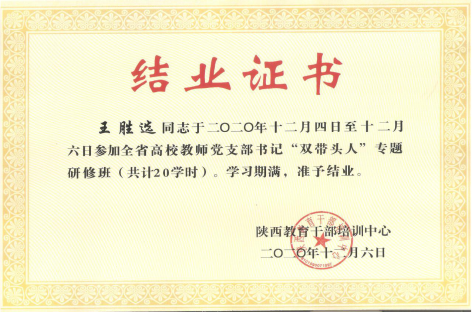 为加强公司党支部书记队伍建设,提升“双带头人”支部建设能力,推动基层党建工作和教学科研工作双促进双提高,公司选派教工一支部书记王胜选副教授参加陕西教育干部培训中心举办的全省高校教师党支部书记“双带头人”专题研修班。