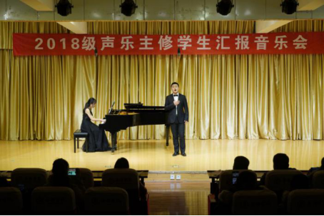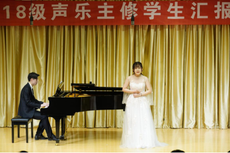 本次音乐会由鄢志莉老师2018级声乐主修18名同学联袂出演,马俊智同学演唱的《跟你走》为音乐会拉开了序幕,这首歌曲表达了中华儿女对党的热爱之情;孟春艳、张转云带来的《长鼓敲起来》描绘了朝鲜族人民敲着长鼓、载歌载舞的热闹景象;惠洁婷带来的《一抹夕阳》选自歌剧《伤逝》,表现了女主人公子君冲破封建枷锁,寻找自由爱情的先进思想;