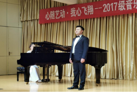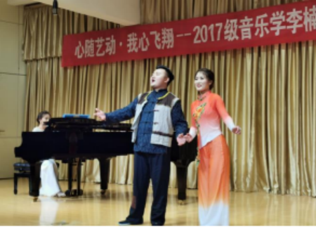 申佩同学带来的古典诗词艺术歌曲《黄鹤楼—送孟浩然之广陵》选词来自李白的诗作,音乐与诗词的完美结合,赋予了作品新的生命力;《乌苏里船歌》是黑龙江省民间的一首船歌,在赫哲族传统民歌曲调基础上进行改编,反映出赫哲族人过上幸福生活,欢快甜美的心情。