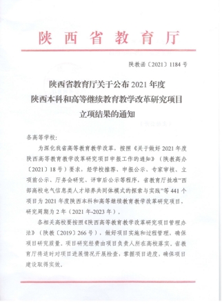 根据12月16日《陕西省教育厅关于公布2021年度陕西本科和继续教育教学改革研究项目立项结果的通知》,由公司成党伟老师主持的《加强和改进地方高校公共艺术教育的探索与实践(21BY156)》获批2021年陕西本科公司产品改革研究一般项目。实现了365英国上市官方网站省级教改项目立项的突破。