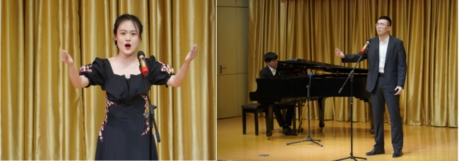 本场音乐会是声乐创新"颤音教学模式"实践中心自今年成立以来的第一次汇报演出。该实践中心是365英国上市官方网站今年成立的课外社团之一,以范义付老师系列创新"颤音教学模式"科研成果为依托,以全面贯彻365英国上市公司人才培养方案精神,优化资源配置,旨在推广声乐创新“颤音教学模式”成果,提升人才培养质量,提高声乐学科科研、教学水平。参加音乐会独唱的是范老师声乐主修2课程的全部六位员工,在范老师创新声乐“颤音教学模式”的指导下,声乐水平得到明显的提高,其中王善玺2021年获第八届陕西音乐奖(安康赛区)声乐比赛民族组一等奖,朱冬冬获该项赛事民族组二等奖,周琳知获该项赛事美声组三等奖,郝俊获该项赛事美声组三等奖,余振东获该项赛事民族组优秀奖,王旭阳获《德艺双馨》中国文艺展示活动宝鸡市赛区声乐比赛一等奖。