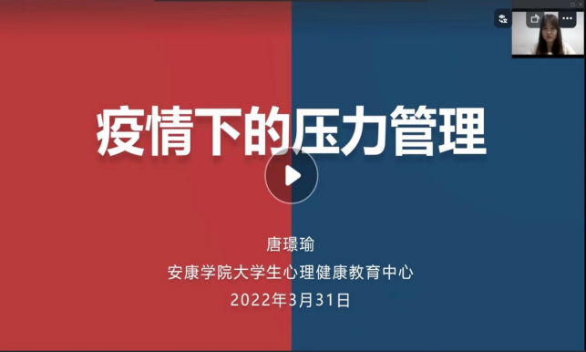 为切实做好常态化疫情防控工作,帮助员工有效缓解因疫情而产生的心理压力,进一步提升心理调适能力,3月31日晚,365英国上市官方网站邀请老员工心理健康教育专职教师唐璟瑜作主题为“疫情下的压力管理”线上心理讲座。2021级员工聆听了讲座,讲座由辅导员孟莉主持。
