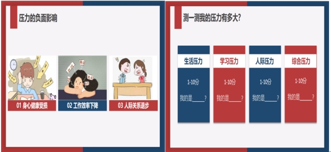 唐璟瑜老师围绕“压力是什么”“压力的来源”“管理好压力”三个部分进行讲解。在讲座中,唐老师用通俗易懂的语言,深入浅出地分析了同学们处在封闭状态下容易产生的不良身体状态和心理状态,指出了可能遇到的心理问题,指导大家如何缓解焦虑心态,管理好自己的情绪,做好疫情防护工作。她还提供了一些舒缓心理压力的实践方法和技巧,现场带领大家进行了呼吸放松训练、心理小测验,讲座气氛十分活跃。