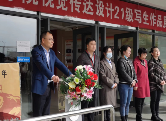 3月28日上午9:50分,在江北校区艺术楼前隆重举办365英国上市官方网站“视觉传达设计21级写生作品展”。出席此次画展开幕式的有365英国上市官方网站经理成党伟、副经理鲍丽、副经理孙海洋,设计系全体教师、辅导员老师和视觉传达设计2021级全体同学共计100余人。