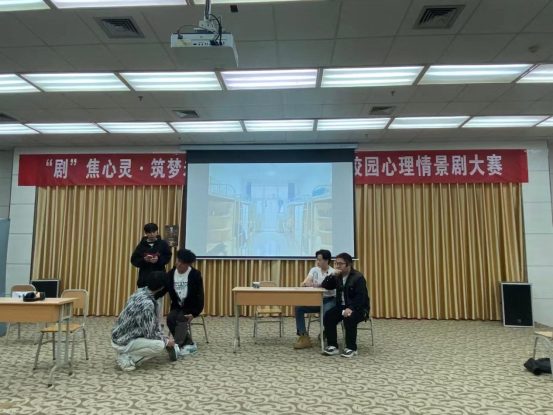 心理情景剧《复活军团》由魏麟、孟莉和李博老师共同指导,崔喆、马世浩、申畅、霍笙凯、张博、徐洋和陈登飞参演,演绎的是同寝室的同学通力合作,采用既搞怪又暖心的方式帮一个有自杀倾向的舍友解开心结的故事。在看似不讲理的幽默中饱含着同学之间善意的关心和陪伴的温情。