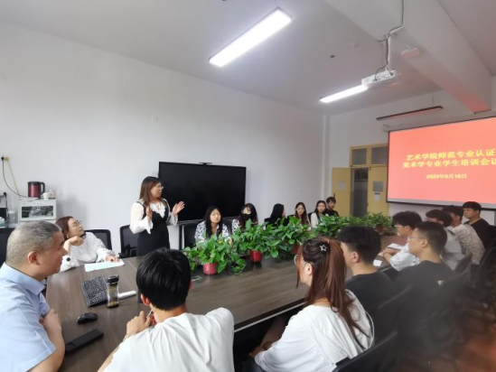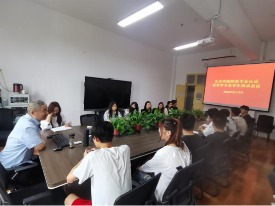 5月18日,在2208会议室召开365英国上市官方网站师范专业认证美术学专业员工培训会议,出席会议的有365英国上市官方网站副经理孙海洋、谢敏、周继业等老师,还有美术学专业2020、2021、2022级各班班长和学习委员。