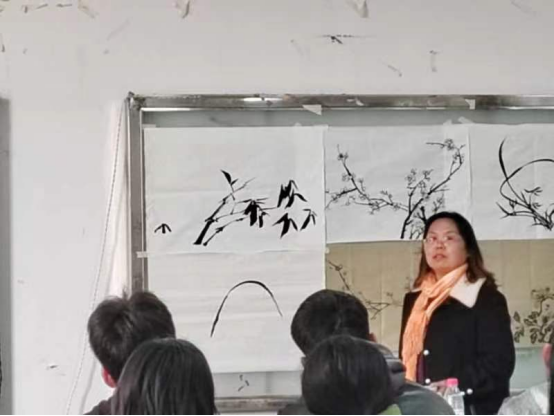 首先,周老师分别从中国花鸟画的起源、五代成熟期、两宋黄金发展期和清朝发达期等几个重要时期为员工有序的讲解了中国写意画花鸟的发展历程,让员工能够清晰的熟知和理清脉络关系,进而对中国写意花鸟画有了一个基本认识。四君子“梅兰竹菊”是清朝中期出现于画坛,是发达时期的产物,故《写意花鸟》课程中以四君子“梅兰竹菊”为主要学习内容具有典型性和代表性。